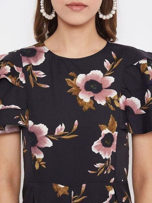 UPTOWNIE Women's Crepe Floral Flared Sleeves Jumpsuit